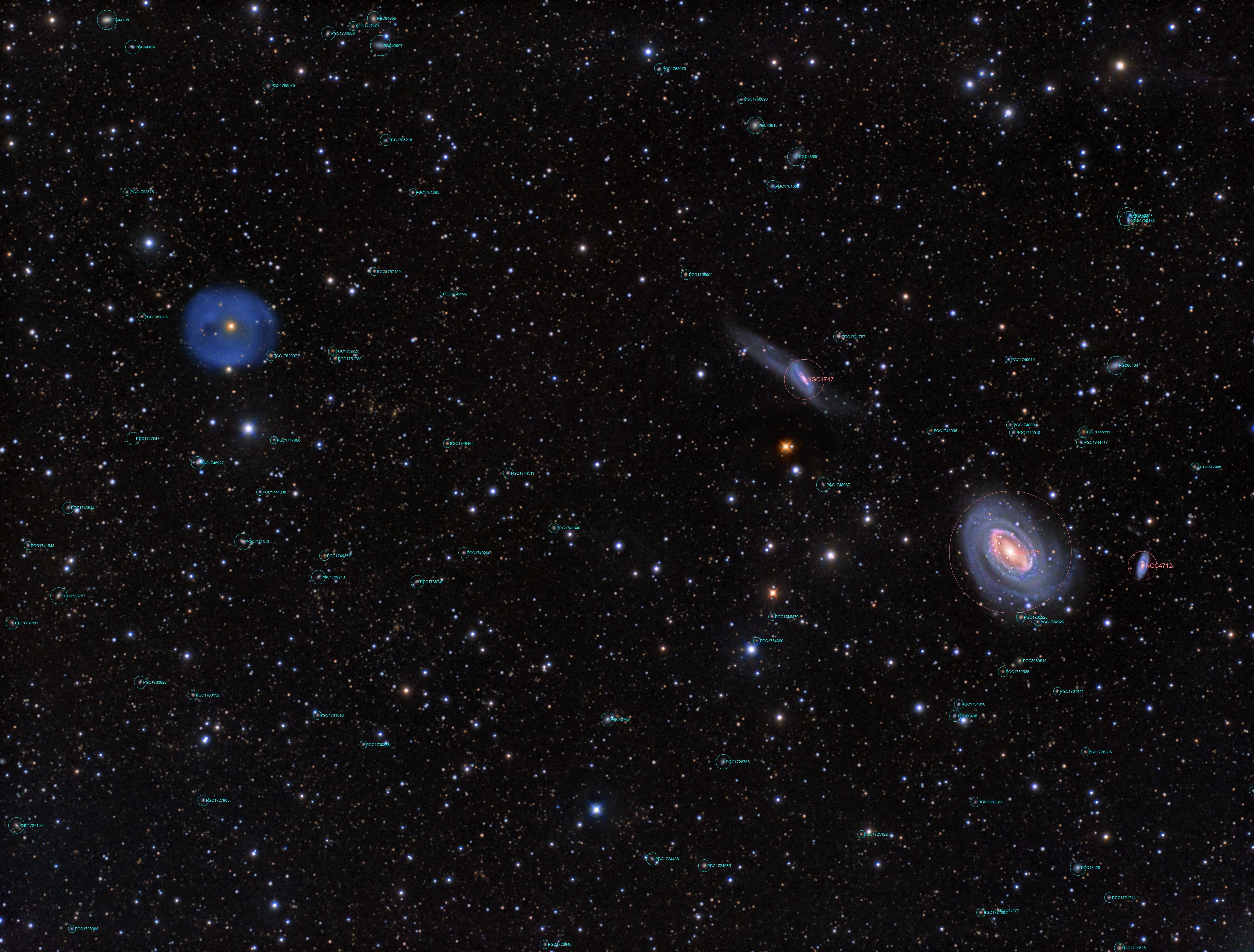 Complétement à gauche, la nébuleuse planétaire LoTr 5 découverte en 1980, située à 1650 Années-lumière.